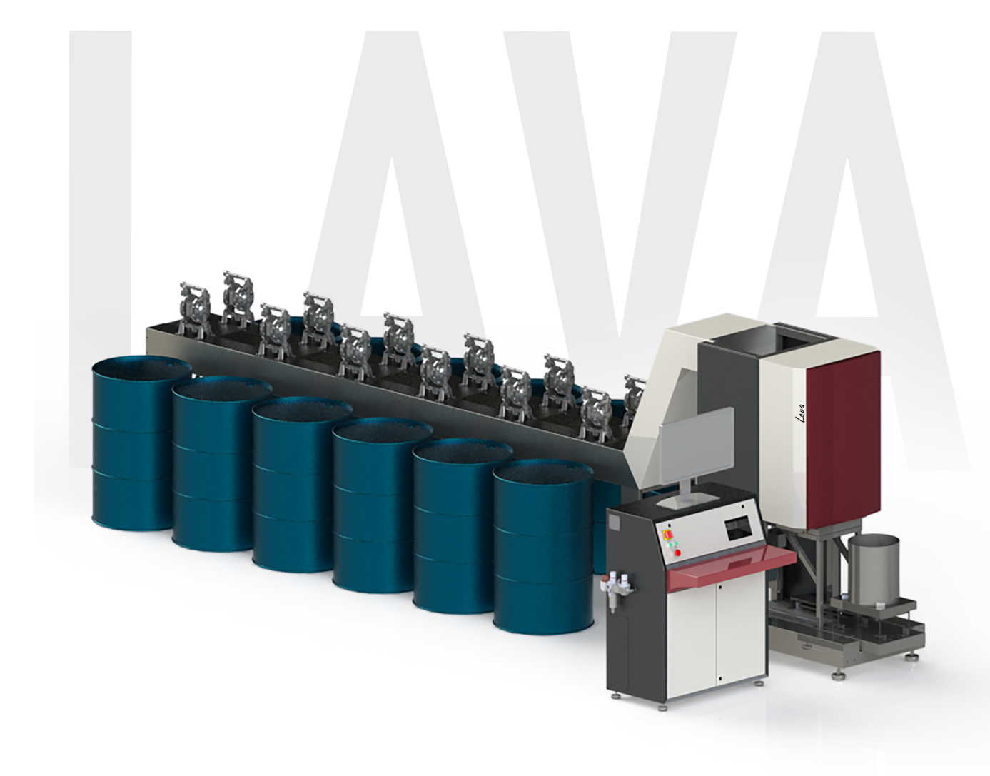 Ada Color Lava model offers flexible and modular layout possibilities with its compact design according to the existing production area. In the layout, components can be stocked in pails, drums or in different types and sizes of containers such as IBCs.
