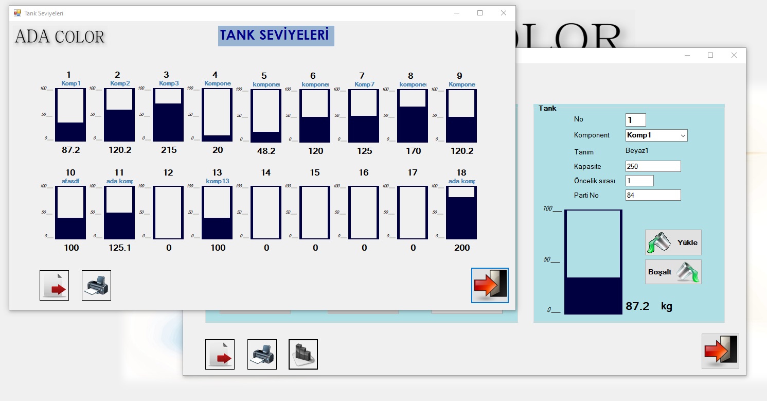 Windows-based dispensing software has been designed in such a way that it can be learned quickly and used practically, as well as having functions that meet all the needs of the users. Basic computer knowledge is sufficient to use the software. The software prepares the formulas defined in the system, monitors the batch numbers, allows the reuse of excess inks, and also provides traceability thanks to its comprehensive reporting function.